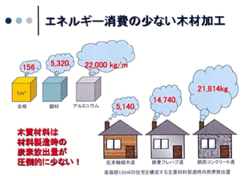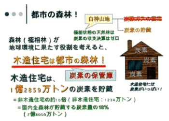 18年前の1993年の推計では、我が国の全住宅に使用されている木材が貯蔵する炭素量は1億4000万t です。