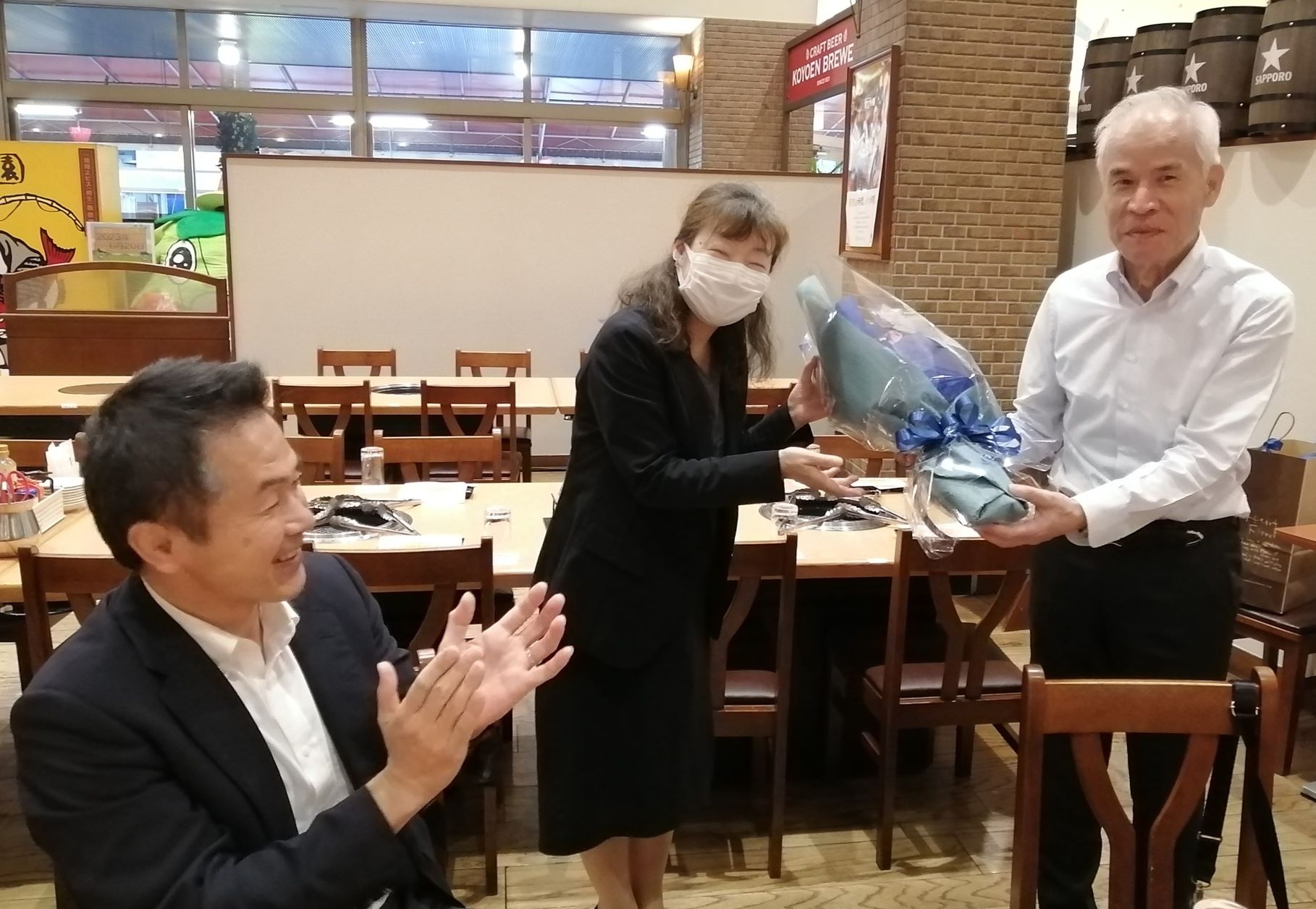 | 2015年5月19日、上地木材片田委員と安井専務理事の送別会 |